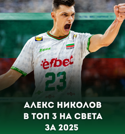 Звездата на България Александър Николов е сред тримата най-добри волейболисти в света за 2025 година в класацията на Международната федерация по волейбол (FIVB). Това стана ясно, след като снощи от FIVB обявиха всички състезатели от 4-о до 10-о място.