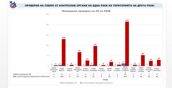 Най-много нарушения са установени в столични болници 214 при 13 проверени болници, следвани от Бургас, където проверка е била извършена в 6 лечебни заведения, а констатираните нарушения са 130, 97 са нарушенията в проверените 6 болници в Пловдив. Абсолютен рекордьор по нарушения е пазарджишката многопрофилна болница, където където са установени 67 нарушения.