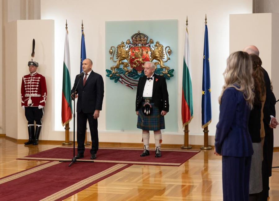 Години наред шестима невинни български граждани бяха лишени от свобода с несправедливи обвинения. В онези години българският народ прояви завидно единство, солидарност и вяра в справедливостта, но този безпрецедентен казус се превърна не само в изпитание за България, но и за моралната сила на международната общност. Това заяви държавният глава Румен Радев на тържествена церемония в Гербовата зала на „Дондуков“ 2 днес, на която удостои с Почетния знак на президента посланика на Великобритания в Либия в периода 2002-2006 година Антъни Лейдън.