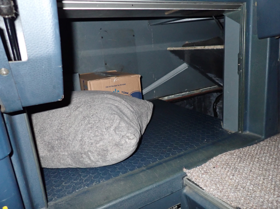 При съвместната проверка с митнически служители по инициатива на „Гранична полиция“, сред пътниците на автобуса е открит мъж без документ за самоличност, по негови данни турски гражданин. Установено е, че той е влязъл в страната укрит в специално пригоден тайник под предните седалки на автобуса, до стълбите на предната пътническа врата.