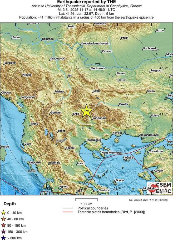 Земетресение с магнитуд 3.5 по Рихтер беше регистрирано този следобед край Благоевград. Трусът е отчетен в 14:48 ч. на 17 ноември 2025 г., сочат данните на Национален институт по геофизика, геодезия и география – БАН.