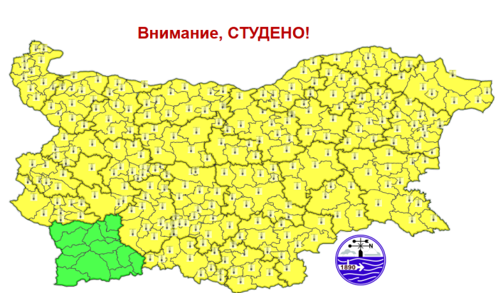 През нощта ще е предимно облачно и на отделни места в крайните западни и североизточни райони ще превалява дъжд, съобщиха от Националния институт по метеорология и хидрология (НИМХ). В низините и по поречията на реките ще е мъгливо. Ще е почти тихо. Минималните температури ще бъдат между 2° и 7°, по крайбрежието на морето ще са по-високи. Атмосферното налягане ще се понижава и ще е по-ниско от средното за месеца.