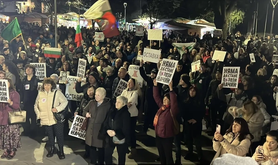 Протест на недоволни граждани от управлението на държавата започна пред сградата на общината в града. Хората носят плакати с надписи „Бизнесът плаща, за да има властта своя частна армия“, „Бизнесът плаща на държавата, държавата плаща на службите-бухалки“и др.