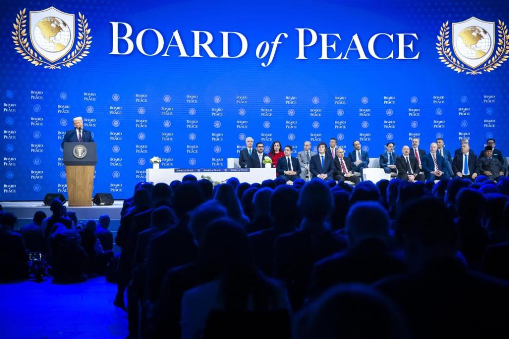 По време на церемонията президентът представи и състава на „Съвета за мир“, в който участието на европейски държави беше ограничено. Сред присъстващите от Европа бяха българският премиер в оставка Росен Желязков, президентът на Косово Вьоса Османи и унгарският министър-председател Виктор Орбан, които положиха своите подписи. Турският министър на външните работи Хакан Фидан също бе сред тях. Липсваха официални представители на водещи западноевропейски съюзници на САЩ като Франция и Германия, предаде БГНЕС.