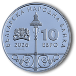 На лицевата страна на монетата: в центъра – изображение на стара градска лампа; вляво – емблемата на БНБ с годината „1879“ върху лентата, под нея – годината на емисията „2026“; вдясно – номиналната стойност „10 ЕВРО“ на два реда. Околовръст – надпис „БЪЛГАРСКА НАРОДНА БАНКА“. |