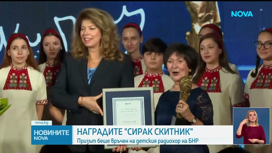 Детският хор на Българското национално радио е институция и показва, че БНР е не само медия, то е истинска културна институция на България. Това каза президентът Илияна Йотова, която връчи голямата награда „Сирак Скитник“ на Детския хор на Българското национално радио (БНР).