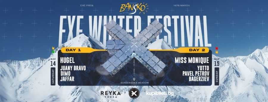 EXE Winter Festival Bansko ще се проведе на Бъндеришка поляна и ще съчетае зимни спортове, планинска среда и електронна музика от световна класа. Форматът включва две бутикови дневни партита на открито (12:00–19:00 ч.), последвани от две афтърпартита на закрито, които ще отбележат края на ски сезона с отличаваща и запомняща се енергия.