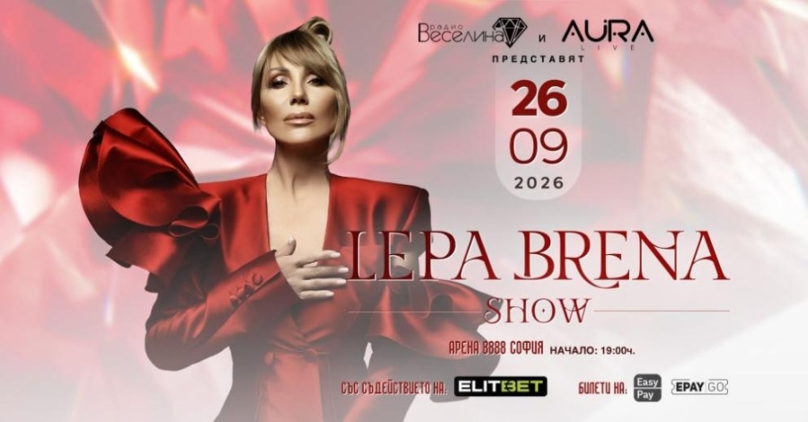 На 26 септември тази година от 19.00 часа легендата на Балканите Лепа Брена се завръща на българска сцена за грандиозен концерт в най-голямата зала в страната – Арена София. Организатор на събитието е Aura Live, а официален медиен партньор – Радио Веселина.