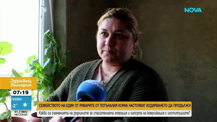 Илияна вижда за последен път баща си Людмил вечерта, преди да отплава с риболовния кораб на капитан Христо Спасов. "На 18-и дойдоха гранични полицаи, взеха номера му и казаха, че корабът е потънал", разказва пред NOVA Илияна Мутишева.