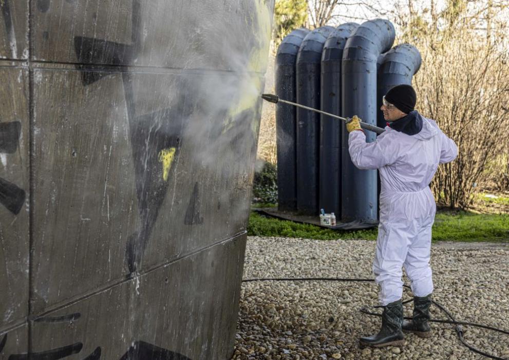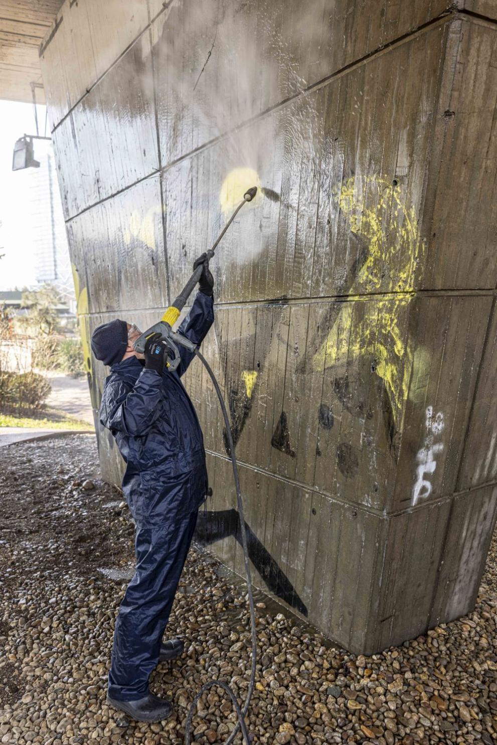 Премахването на надписите се извършва със специализирана техника, съобразена с различните видове повърхности, като към момента се използва водоструйна техника с високо налягане.