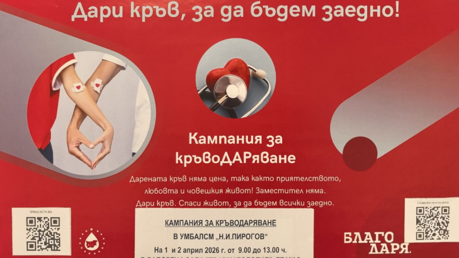 Днес и утре в болница "Пирогов" стартира кампания за кръводаряване.