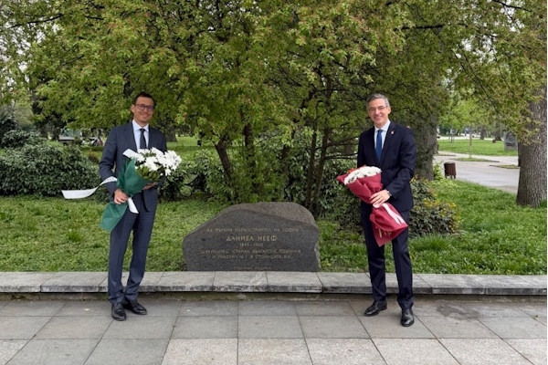Кметът на София Васил Терзиев и посланикът на Швейцария в България Н.Пр. Пиер Хагман поднесоха цветя пред паметната плоча на създателя на Борисова градина – швейцарския градинар Даниел Неф.