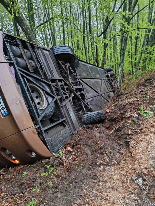 От полицията съобщиха, че в 7.05 ч. е получен сигнал за настъпило самостоятелно ПТП с обърнат украински автобус на пътя Бургас - Малко Търново, непосредствено преди ГКПП "Малко Търново" в посока Турция.