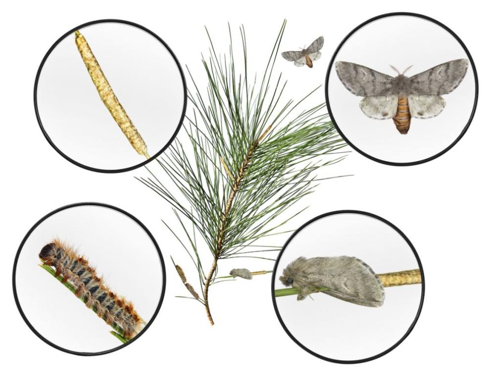 Този вид, чиито гъсеници се хранят с борови иглички, се смята за един от най-опасните неприятели по боровете и е основен фактор, ограничаващ развитието и оцеляването на боровите гори. Неприятелят напада основно черен бор.